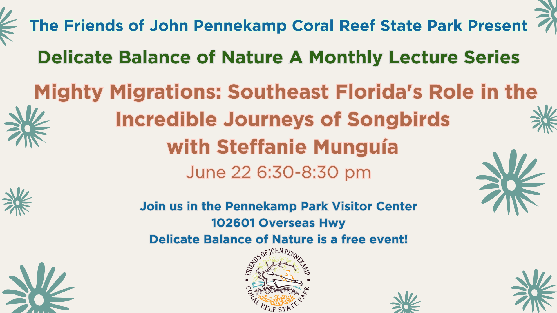 Join us in person at the John Pennekamp Visitor Center at 6:30pm for a pre lecture reception or via Zoom at 7:15pm: https://us02web.zoom.us/j/81000667101